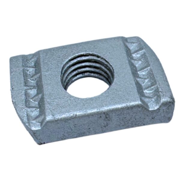 These M12 hot dipped galvanised channel nuts (also known as M12 plain Zebs) are engineered for use in Unistrut-type 41mm channels. With a 9.5mm thick profile and over tapped M12 thread, they are designed to pair perfectly with HDG threaded rod and hex head screws in demanding structural applications.