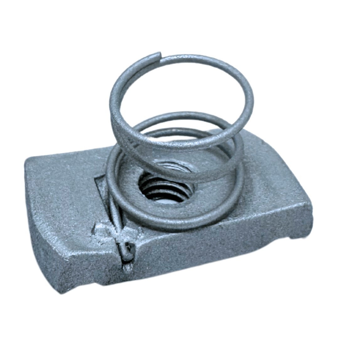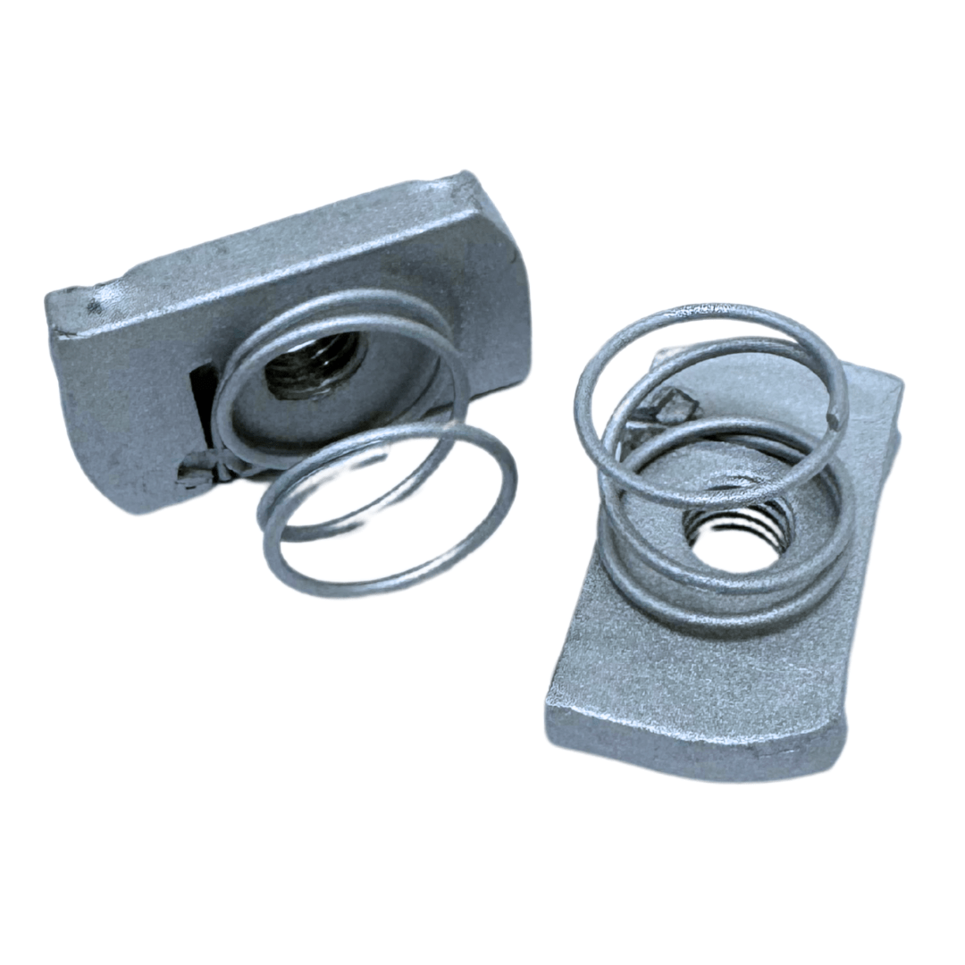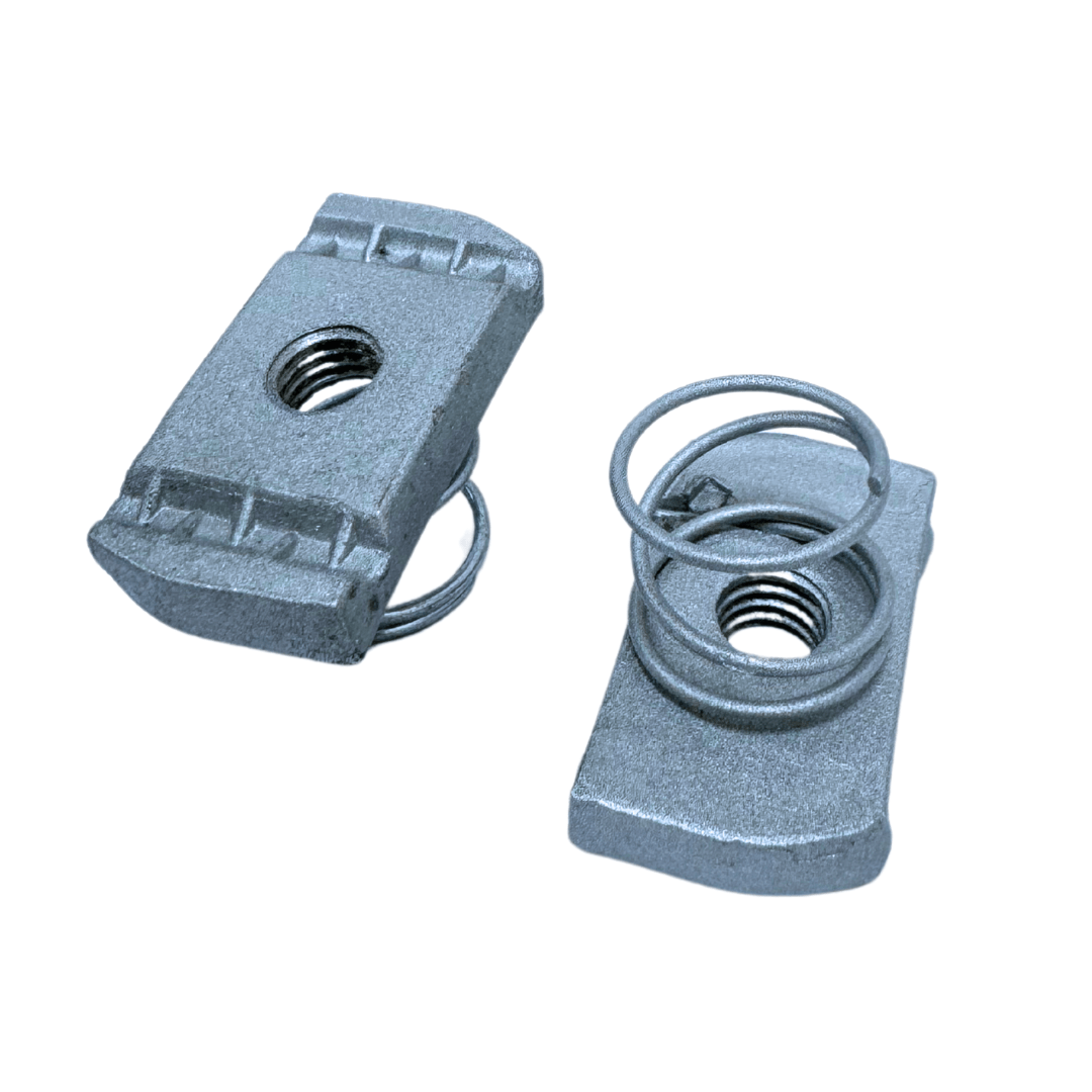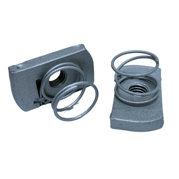 M8 HDG short spring nuts are ideal for mounting brackets, pipe supports, and cable containment within 21mm-wide channels. Their corrosion-resistant finish makes them perfect for outdoor and industrial environments.