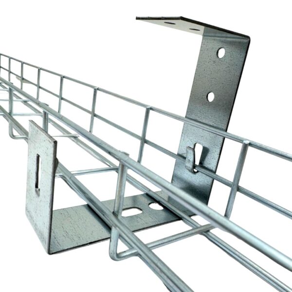 This 100mm wire mesh basket bracket offers a flexible and secure solution for mounting cable trays in both commercial and industrial environments. Designed with a smart dual-hook configuration, the tray always rests firmly at the base—even if only one hook engages—making installation easy and reliable across all tray brands.